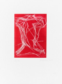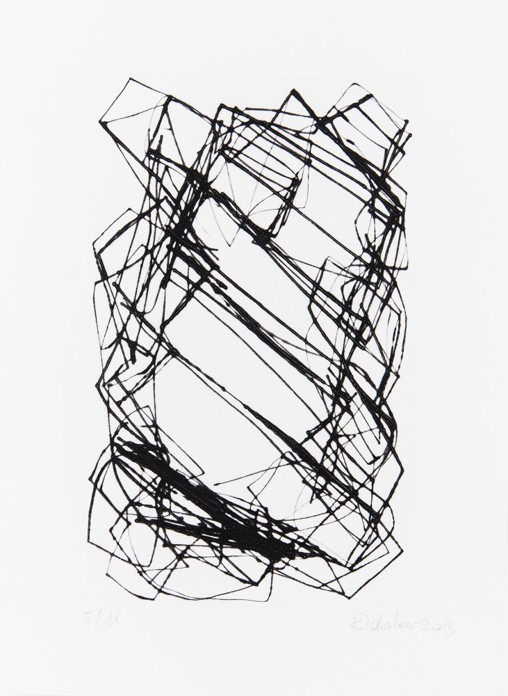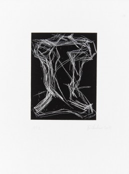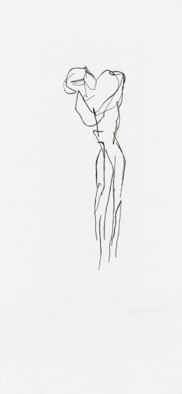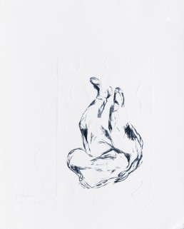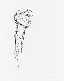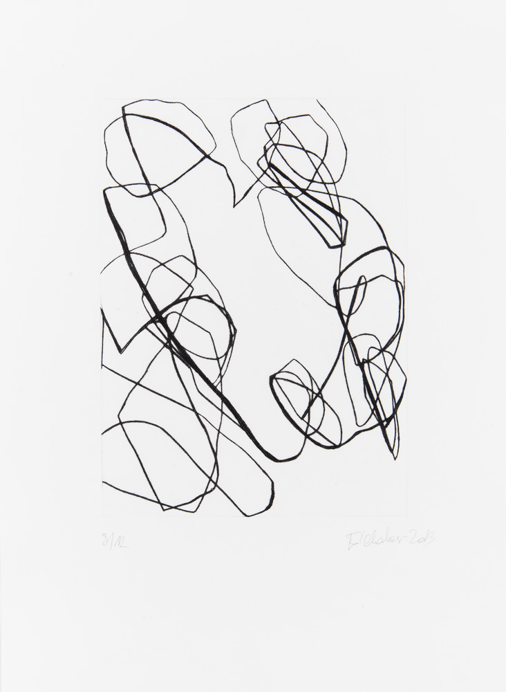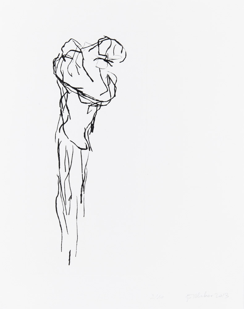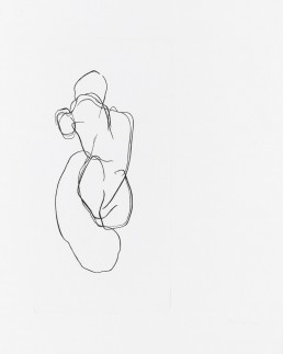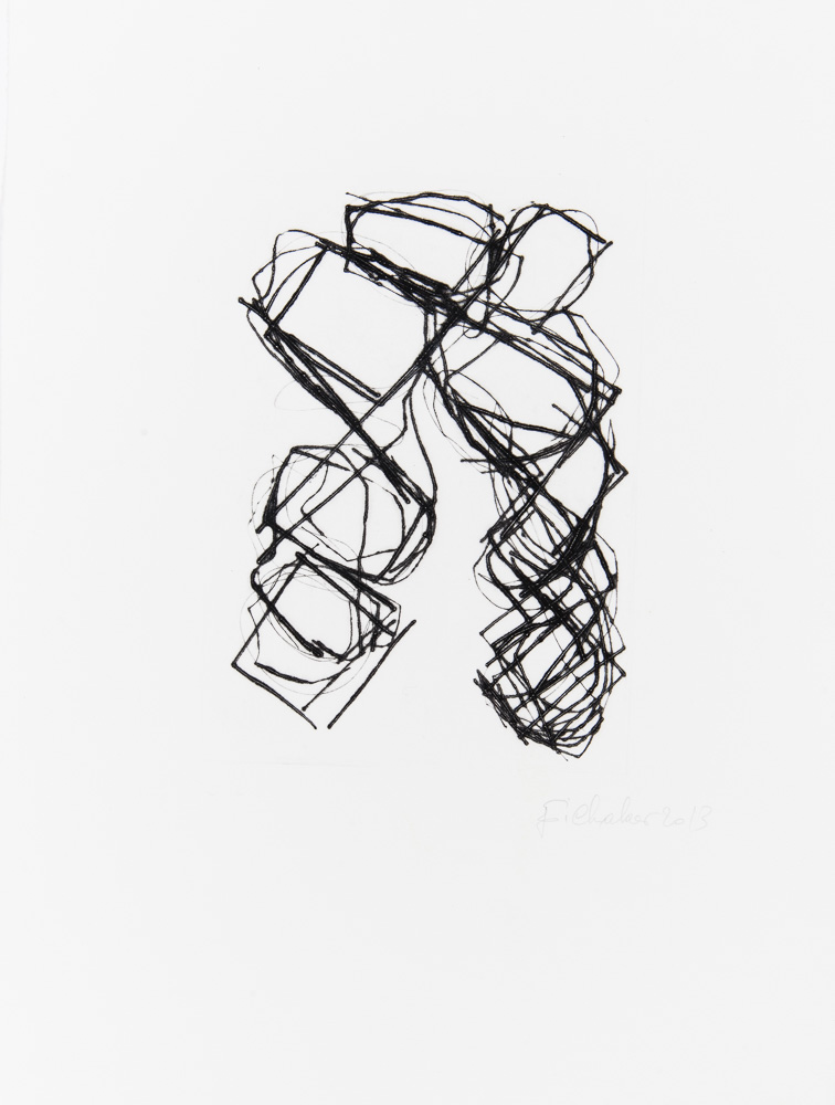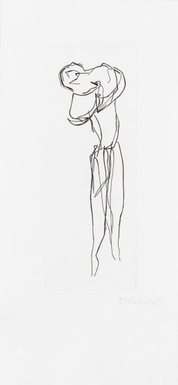Le trait tantôt abstrait tantôt figuratif se dévide comme un fil, un fil d’Ariane facétieux qui détricote le mythe et se l’approprie.