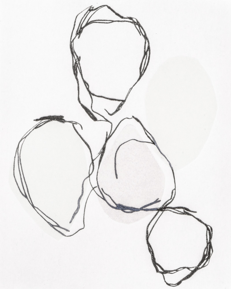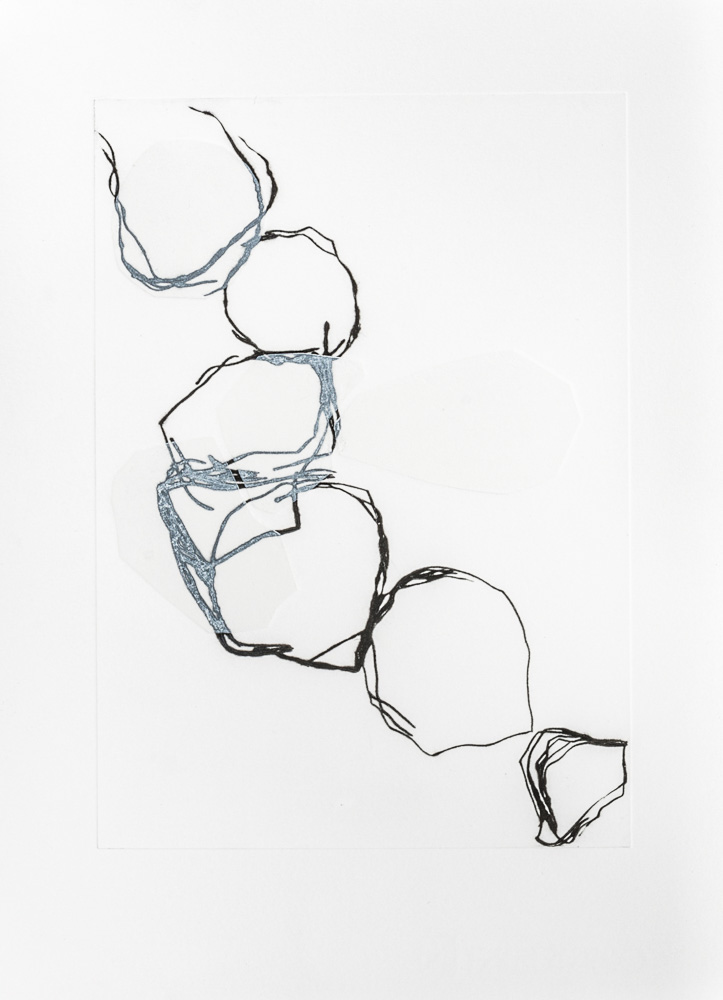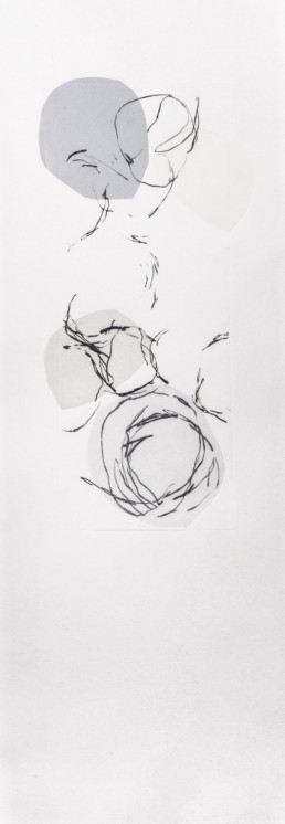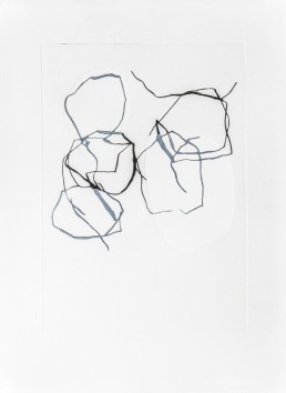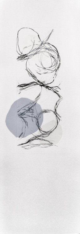 Onze gravures où le trait noir court sur le papier blanc se superpose aux aplats gaufrés.