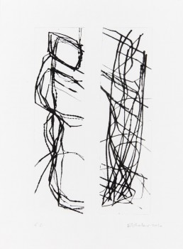Des silhouettes très simplifiées, des fragments de corps, dos, bras, fesses, une collection de corps épars humains ou de carcasses animales qui ne ressemblent à rien et que l’on reconnait quand même comme le dessin enfantin de La Tête à Toto !